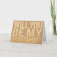 Mjukt hälsningskort med trendig, contemporary, snyggt guld glitter blocktypografi som frågar "Kommer du att bli min brud". Kraftkortsbakgrund i lagrar. Enkel, minimalistisk, mycket sofistikerad.