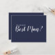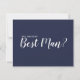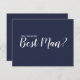 "Kommer du att vara min bästa man?" Modern skribentblåkort med texten "Kommer du att vara min bäste man?" i vitt, modernt skribentteckensnitt stil med detaljer i vitt modernt sans serif-teckensnitt på marin blå bakgrund.