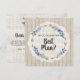Vackra jeansblå blomstermotiv med djärva bohemiska pilmotiv ger denna design massor av bra energi! Rustik bakgrund i trä, vit tvätt och realistisk akvarellstil ger graciös struktur och charm. Naturlig och fräsch för ett modernt bröllop.