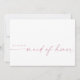 Denna minimalistiska utformning är perfekt för den moderna bruden! Med ett handskrivet namnteckning skript parat med ett enkelt sans-serif-teckensnitt i en rosa för ett subtilt pop av färg. Anpassa med ditt eget meddelande på baksidan, eller beställ tomma meddelanden och skriv ditt meddelande. Kolla in butiken för matchande Bridesmaid-kort!