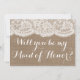 Kommer du att vara min Maid of honor? Rustiska Burlap & vita Snöre-kort