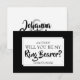 Varje brudgum behöver en ringbärare på sin bröllopsdag. Detta förslags kort är ett bra sätt att fråga en brorson, en väns son eller någon speciell pojke i ditt liv att vara en del av bröllopet. Funktioner en svart-vit design med fet skrift och en plats att ange ett speciellt meddelande.