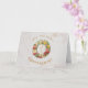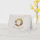 Detta eleganta blommiga "Vill ni vara min fadder?" förfrågningskort har ett guldkors i en vildrosenkrans i mitten. Bakgrunden är vit marmor. All text, skriven runt rosenkransen, har en gyllengul färg, liknande guldkorset.