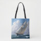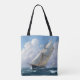 En segelbåt ändrar kurs i tävling i denna spännande, dynamiska bild på en toteväska. Perfekt för alla som seglar i kärlek och i havet.