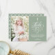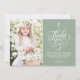 Kommuniokationskort för första Heligan Rosa med visuella skript - foto - tackkort | Tack till familj och vänner med det här anpassadet, tack för ditt platta kort. Den har visuella skript på mint grönt bakgrund och quatrefoil mönster. Det här fototacket du kort för i eleganten kommer också att vara perfekt för Baptism och ett tack för Christening.