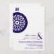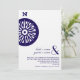 En enkel bröllopsinbjudan med en bild av en kompass till vänster. Anpassa den matchande marinblå texten längst ner till höger med detaljer om ditt evenemang.