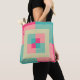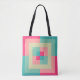 Den här bilden är en geometrisk abstrakt design med koncentriskt kvadratiskt lagrar som spiral inåt. Kvadterna består av fet och kontrasterande färg: gult, orange, rött, oliv grönt och djup lila. Varje kvadrant alternerar i färg och ge utformningen av en dynamisk och nästan optisk illusionsliknande effekt. Kombinationen av varma toner och coolor skapar djup och balans.