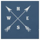 Kompassillustration med pilar och nord, öster, syd, väster dekoration med blå bakgrund