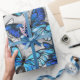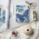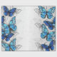 Vertikal komposition av realistiska, blå och vita morpho-fjärilar på grå texturerad bakgrund. Morpho blå fjäril.