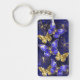 Komposition av lyxiga safir- och guldfjärilar i smycken på blå texturerad bakgrund.