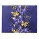 Komposition av lyxiga safir- och guldfjärilar i smycken på blå texturerad bakgrund.
