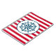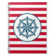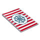Nautisk design med kompass dekoration på röd och vit strimlad bakgrund