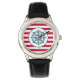 Nautisk design med kompass dekoration på röd och vit strimlad bakgrund
