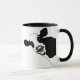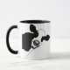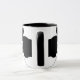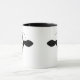 En svartvit Ringermuggvisning huvudet av en ko på båda sidor av muggen.
