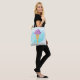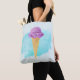 En yummy tote-väska med en utsökt illustration av glasskrämen, med en skop av lila glass inuti en våffelkon. Ställ in på en vattentblått färgstänk/penseldrag.