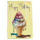 Att köra glasskon med sprinkles på gultens bakgrund för födelsedagen. Bakgrunden till färg kan ändras.