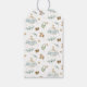 Fira de blivande föräldrarna med denna snygga könsmognadsinsamling med en vattenfärgad illustration av baby första kläder och leksak omgiven av eukalyptus löv och ett matchande mönster på baksidan.