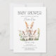 Kute babydusch illustrerar bunnier och vilda blommor i könsneutrala färg. Personlig med din egen text. Användan Redigera designfunktion om du vill ändra teckensnitt storlekt, stil eller färg. Kolla in hela samlingen för inbjudningar, matchande favoritpåsar, klistermärken, tackkort, banderoll med mera..