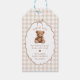 Kön Neutral Gingham Nalle Baby Shower Presentetikett