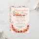 Pumpor, falltemerade babyduschinbjudningar har en känslig vattenfärgsdesign med höst löv och blommor i varma orange-, rött- och rosa. Inbjudningarna visar på vackert handmålade pumpor omgivna av vibrerande löv och blommar, som ställs mot en mjuk, grå bakgrund. Elegant-skript typsnitt tillför en aning sofistikering, medan subtila vattenfärger tvättar en charmig, rustik känsla. Inbjudan är tanklöst designad för att skapa en varm och bjuda in perfekt för att fira den kommande ankomsten.