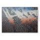 Observera Kort med ett foto nära till kondenserade vatten-droppar på metall med röda, vita och blå reflektioner.