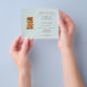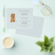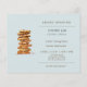 Inbjudan till konditoriets öppning med akvarell torn av chokladchipskakor på blå bakgrund.