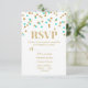Bröllop OSA-kort med blåakturkos guld glitter konetti mönster. Finns i många matchande bröllop-produkter. (Observera att effekten glitter endast skrivs ut.)
