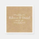 RUSTISKA CRAFT GULD DUST CONFETTI BRÖLLOP PAPPRA NAPKINS. Bekvämt sinnade hjärtan och rosett band motiv gräns er information om personlig namn och bröllop på en papper bakgrund för en rustiksbåt som sprinklats med guld stoftkonfetti. Designad av Pure Piglet© på www.zazzle.com/purepiglet*.