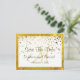 Luxi och romantisk design med guld foil ram, konfetti, hjärtan och pilar på vit bakgrund. Använda Anpassa det verktyg om du vill lägga till ditt monogram, namn, bröllop färg och information på baksidan. För matchande tillbehör, se Guld Confetti, Hearts, Arrows and Black?white Leather Bröllop Collection.
