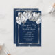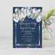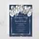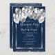 Elegant silver ram, ballonger och konfetti på marinblå bakgrund.