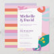 En färglös bröllopsinbjudan till contemporaryn i en färsk färg palett.