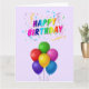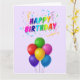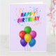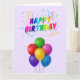 Roligt födelsedagskort med ballonger, konfekt och text "Grattis på födelsedagen!"