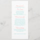 Dubbla-sidig konfektyr krossade prickar grafisk middagsmeny för bröllopsmiddag i koral orange, grönt blå på vit bakgrund. Kontakta mig om du behöver hjälp med att passa in kurser på den här menyn. © Art och design av Sarah Trett för www.mylittleedenweddings.com