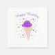 Redo för en toppen födelsedagsfirande. En lila glasskon av coola konfetti med konetti sprinkles i söt färg. Ord Grattis på födelsedagen i rosa kan bytas ut.