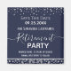 Du kan enkelt justera pension party och spara datumet. Inget foto, finare-skript och silver-konetti-design. Olika tillgängliga färger. Flat färg. All text är justerbar. Underbar påminnelse till er stora pension party!