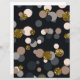 Ett mönster av slumpmässiga konfektytor i en pastellpersika, äppelbrun och grått palett, med guld glitter mot mörkens bakgrund.