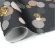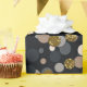 Ett mönster av slumpmässiga konfektytor i en pastellpersika, äppelbrun och grått palett, med guld glitter mot mörkens bakgrund.