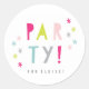 Denna roliga, ljusa, moderna dekal har handritad regnbåge PARTY-konst och stjärnor och redigerbart namn. Färgen på namnet kan ändras med hjälp av anpassningsverktyget i sidofältet. Perfekt för användning på inbjudan kuvert eller festgåvor och presentpåsar. Leta efter kompletterande föremål som frimärken, inbjudningar, adressetiketter, klistermärken och mer i hela Konfettifest kollektionen av Stacey Meacham.
