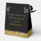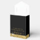 Elegant mini-tält-triangelaffär med gult guld gräns och konetti sprinkles mot svart bakgrund med anpassningsbar-tack, stil för en modern och glittrens födelsedag, perfekt, Quinceañera, chic, babydusch eller bachelrette-fest. Klicka på ANPASSA YTTERLIGARE om du vill ändra typsnitt, färg och layout för att skapa en roligt och en unik personlig-förmånslåda för gästerna i party.