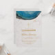 Denna eleganta konfirmationsinbjudan, som rekommenderas för en pojke, har en stor blå agat-geod i den övre delen, ovanför texten. Bakgrunden är vit marmor.