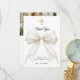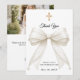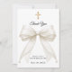 Ett modernt och elegant tackkort för konfirmation. En vit bakgrund, dekorerad med en stor elfenbensfärgad slinga med pärlor och ett gyllene kors. På framsidan texten: Tack, namn och datum.