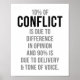 10 procent av konflikten beror på åsiktsskillnader och 90 procent beror på resultat och tonfall.