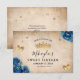Letar du efter eleganta "spara datum"-idéer i kunglig blå och guld festtemafärger? Dessa enkla gör-det-själv-mall "spara datum"-inbjudningar låter dig skapa din egen unika sagoprinsessa-papper. Den botaniska vintage-blomstermålningen i akvarell av Raphaela Wilson framhäver kungliga blå rosor med falska metalliska guldaccenter, en tiara-krona och glitterfjärilkonfetti över en gammal pergamentliknande pappersstruktur. Dessa vackra blomster-"spara datum"-kort kan användas för en blå söt 16/ sextonårs födelsedagsfest, men de kan omformuleras för att komplettera rosbröllop, en kunglig blå och guld quince (15 år gammal / xv), saga bröllopsdusch, baby shower för pojke eller flicka, bland andra stora dagar. Om du föredrar "spara datum"-postkort, klassiska magneter eller en annan pappersmall, är du välkommen att överföra fjärilsdesignen till en annan produkttyp. Du kan också redigera den svarta kalligrafiska skriften och moderna typsnitt till valfri typsnittsstil. Med gott om utrymme på baksidan av dessa vintage-mall "spara datum", kan du inkludera