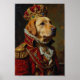 Ett majestätiskt kungligt porträtt med den älskade Labrador Retrievern avbildad som en ädel hertig. Inspirerad av klassiska renässansmålningar framhäver designen hundens vänliga uttryck och starka byggnad med lyxig aristokratisk klädsel och kunglig krona.