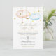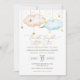 En vacker Twinkle Twinkle Little Star/Måne tematiskt inbjudan med guld måne och stjärnor med rosa och babyblå moln . Den moderna förtrollande stilen kompletteras med guld handskrivna teckensnitt. Perfekt för både en köns avslöjande fest eller en baby shower.