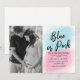 Bjud in familj och vänner till din könsbestämningsfest. Dessa eleganta baby shower-inbjudningar för par visar ett foto av de blivande föräldrarna, en explosion av rosa och blå pulver, det söta talesättet "blå eller rosa, vad tror du?", plus en mall för könsfest som är enkel att anpassa.