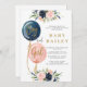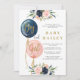 Pojke och flicka könsbestämning baby shower inbjudan, blomster könsbestämning, marinblå och rosa ballonger inbjudan