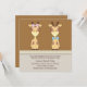 Söta pojk- och flickgiraff-inbjudningar till könsbestämningsfest. Denna bedårande bruna och beige babyköns-inbjudan har en söt flickgiraff och pojkgiraff på en brun och beige bakgrund.