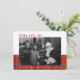 Dela dina glada nyheter i festlig stil! Detta könsbestämningskort för högtiden har det glada budskapet: ”Fred. Kärlek. Glädje. Vi väntar en ny pojke.” Mot en mysig röd rutig bakgrund är denna roliga och hjärtliga design perfekt för familjer som växer sin pojkstam. Framsidan har plats för ett familjefoto, medan baksidan låter dig lägga till en ultraljudsbild av din senaste lilla kille. En grafisk illustration av en fluga kan flyttas eller tas bort för att passa din layout. Helt redigerbar och enkel att anpassa är detta kort ett unikt sätt att sprida höstglädje och bebisglädje på en gång!