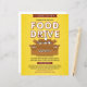 Faktorn för insamling av maträtter har kartong med burad mat och gult. Flyers syfte är att främja livsmedelsdonationer för att mata de hungriga.